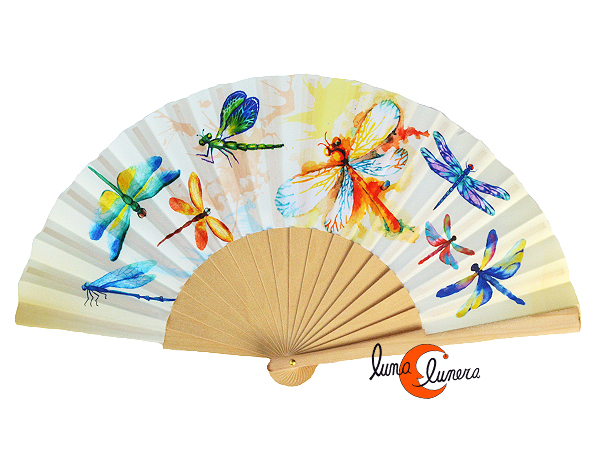 Originales abanicos de tela y madera co libélulas. ¿Buscas un regalo para alguien especial?,¿le gustan las libélulas?, ¿le gustan los abanicos?, ¿los colecciona?...