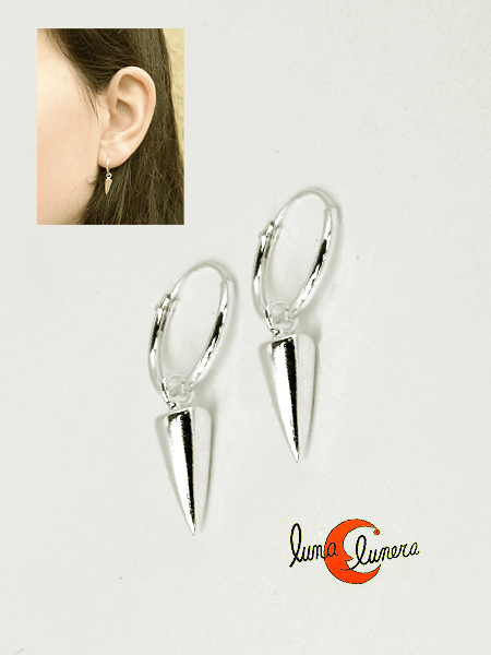 Aros pequeños de plata con adorno colgando. Péndulo.