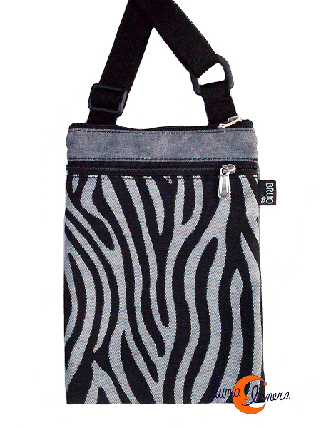 Bolsito XXL de tela para el teléfono movil Bruo. Print cebra grande gris.