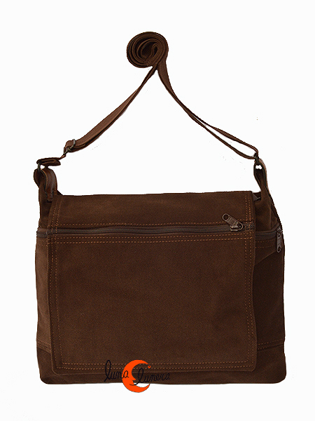 Bolsos y mochilas de tela, colección Vinicius. Bolso mediano con tapa marrón chocolate.