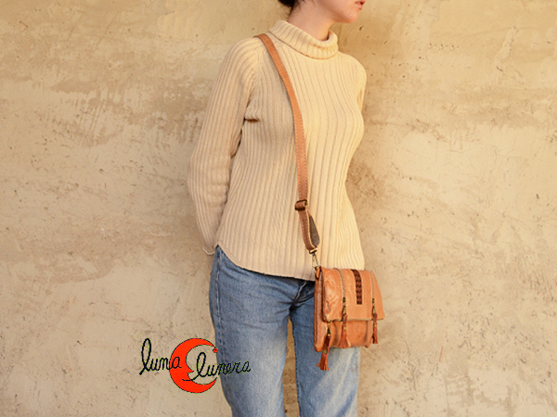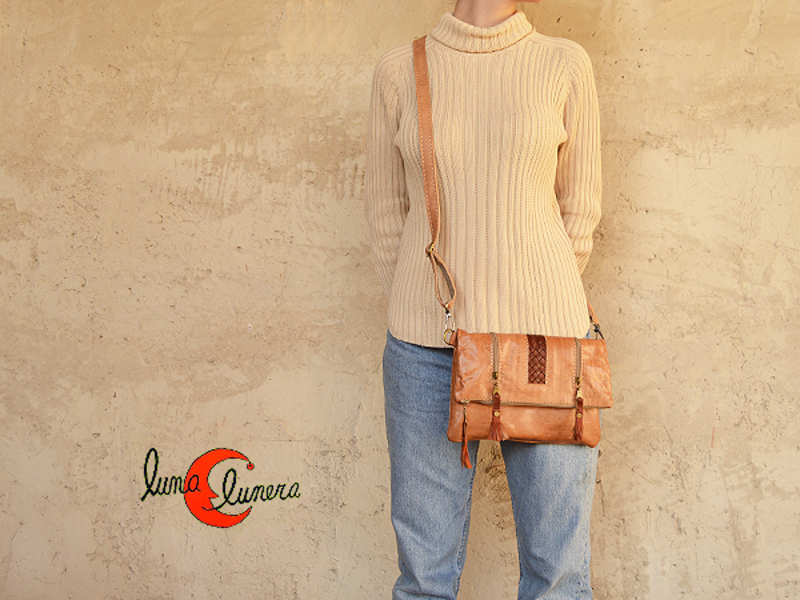 Bolso de mano de piel de Marruecos mediano rectangular. Cierra con cremallera. Tiene un bolsillo pequeño exterior. Forrado por dentro. Piel blanda de color natural. Se le puede poner un asa regulable y usarlo como bandolera. ES muy bonito y muy original.