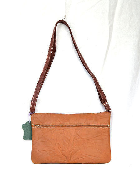 Arteycuero. Bolsito plano muy cómodo de piel suave, ideal para salir a caminar. Cierra con cremallera y tiene dos bolsillos, uno interior y otro exterior que también cierra con cremallera. Asa larga para poner en bandolera, si se pone doble también vale para llevar colgado del hombro. Adornado con la combinación de dos pieles haciendo la forma de "olas". Tamaño 17 por 27 cm.