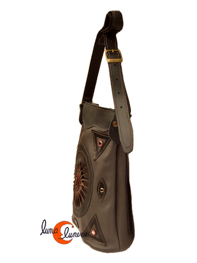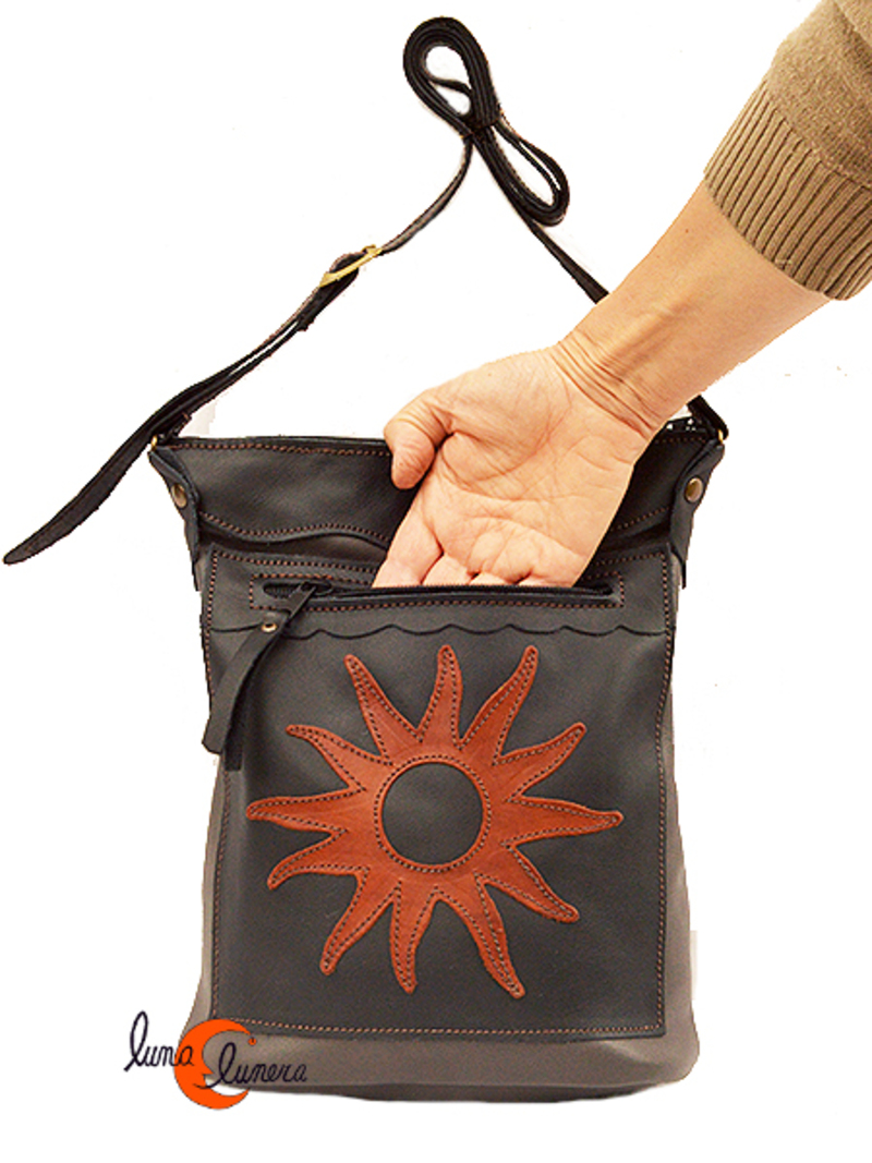 Bolso bandolera larga plana hecha en asturias en el taller Arco Iris. Totalmente artesanal, hecho con buenos acabados y buenos materiales, garantía de calidad. Cierra con cremallera. Tiene un bolsillo exterior por la parte de atrás que cierra también con cremallera y otro pequeño de tela en el interior. Muy bonita, original, cómoda y muy liviana. De piel blanda y decoraciones.