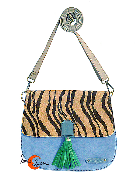 Bolso grande de bandolera de piel de colores de la casa catalana Soruka fabricado en India con pieles recicladas. Producto de artesanía hecho con buenos acabados y buenos materiales, garantía de calidad. Piel de ante, cierra con solapa con cierre de imán. Tiene un pompón con flecos de piel como tirador. Por dentro, tiene tres compartimentos independientes uno de ellos con un bolsillo interior con cremallera, es un bolso con bastante capacidad, pues tiene una base extensible de hasta 8 cm. Está forrado con tela, tiene una asa para usarlo como bandolera y que se puede sacar. Súper cómodo, liviano y muy bonito por su especial combinación de colores.