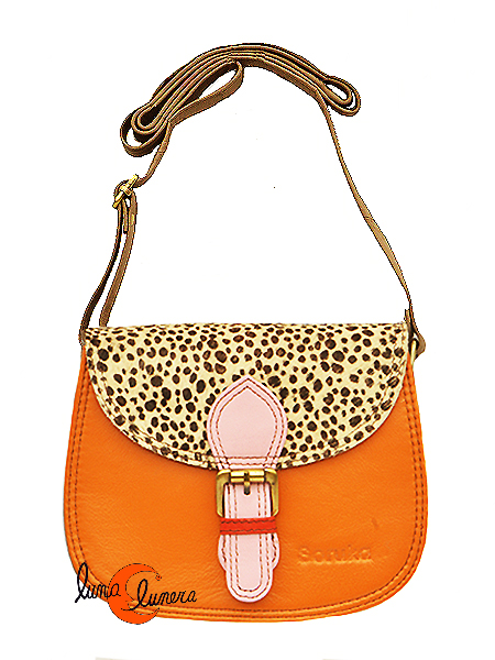 Soruka, bolsos de piel de colores. Bolso pequeño redondo doble costura print, naranjo oscuro.