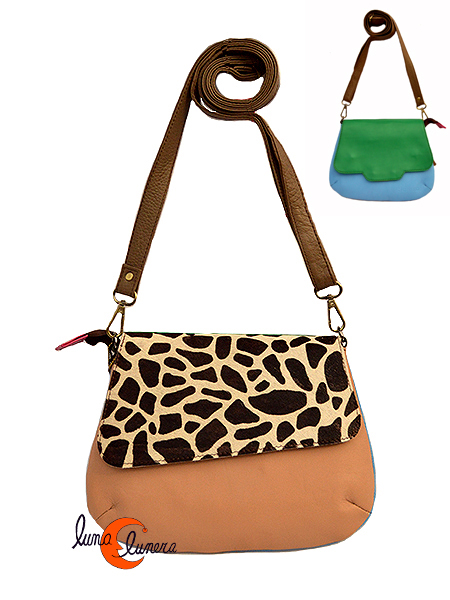 Soruka, bolsos de piel de colores. Bolso tapa intercambiable celeste y marfil.