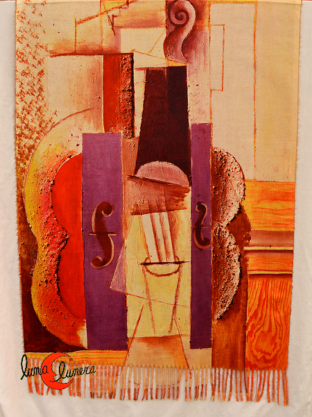Bufanda o fular de invierno de cachemira muy suave con el cuadro Vilolín y guitarra de Picasso.