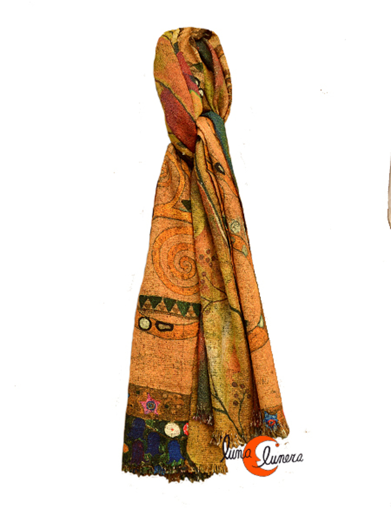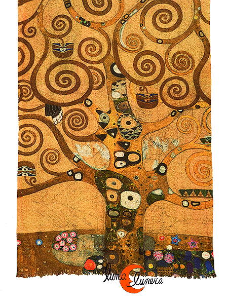 Bufanda o fular de tela rústica muy suave REVERSIBLE, Árbol dela Vida de Klimt.