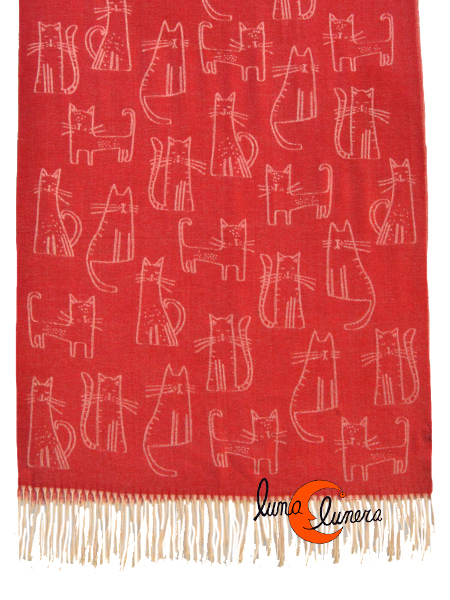 Preciosa bufanda fular de invierno suave al tacto, calentita para el invierno. Es larga, lo que permite darle un par de vueltas al cuello, pero como el tejido es muy suave, no abulta. Tiene dibujos de gatos que la hacen muy graciosa, perfecta para los/las amantes de estos preciosos animales. Composición 100% acrílico. No pica.