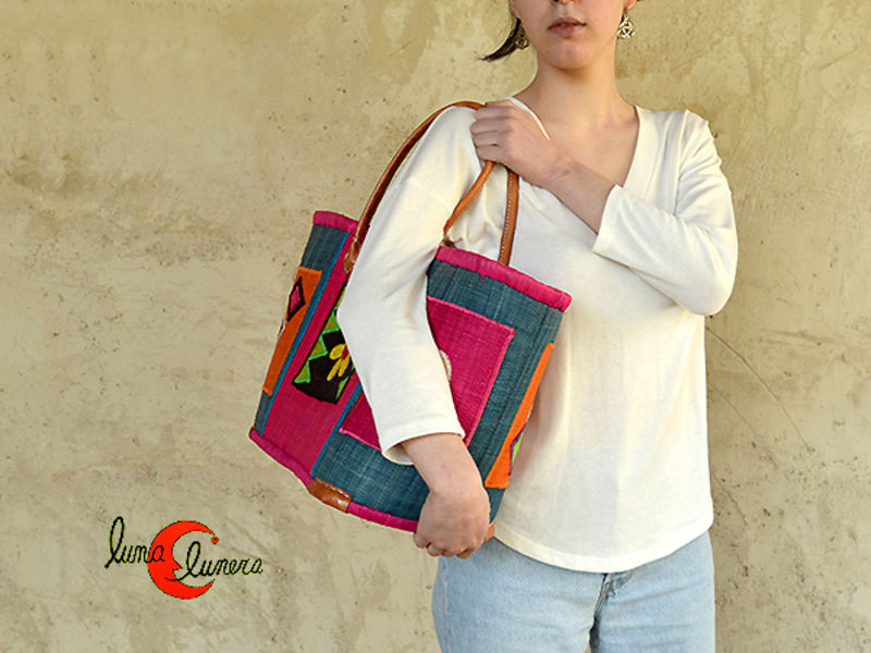 Bolso tipo capazo grande de paja fucsia