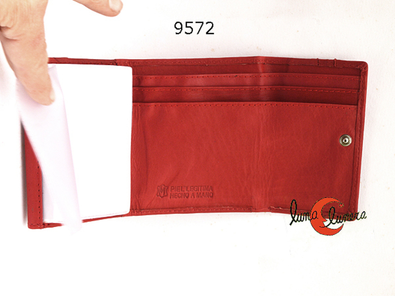 Carteras y monederos de piel hechos en Málaga por la fábrica Morgado, garantía de calidad. Cartera con monedero y tarjetero. Color rojo.