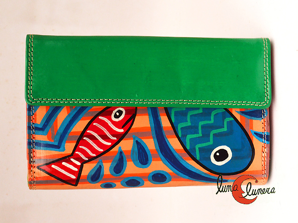 Cartera de piel Belmonte colección peces. Grande color verde.