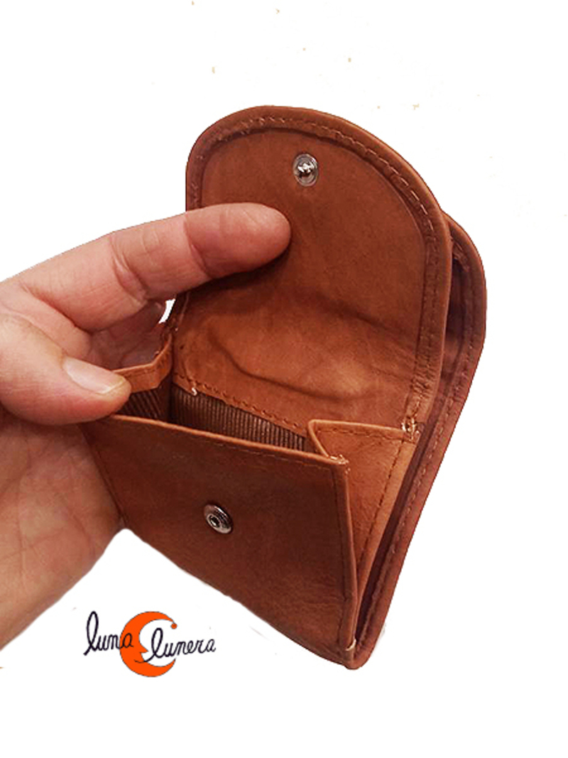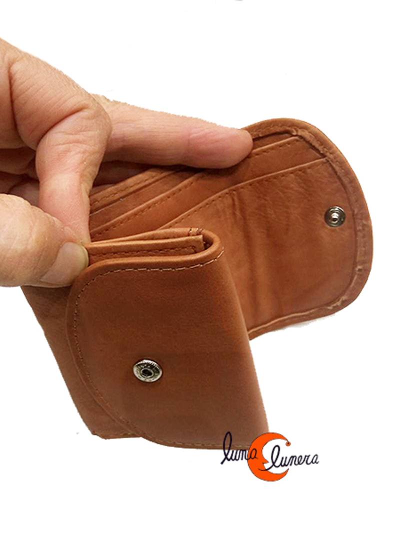 Pequeño monedero billetero de piel para chico o chica. Tiene doble cierre de clip, uno para el monedero y otro para los billetes. Sólo para dinero. No caben tarjetas ni DNI. EL BILLETERO ABIERTO A LO LARGO ES DE 17 CM.