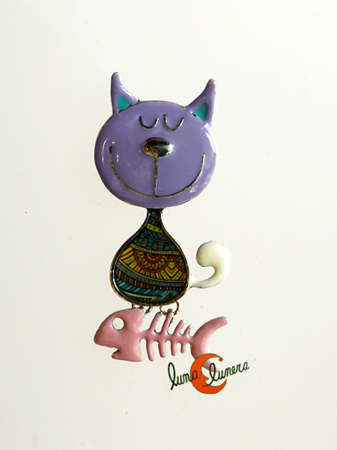 Broche gato con aspa de pez, lila.