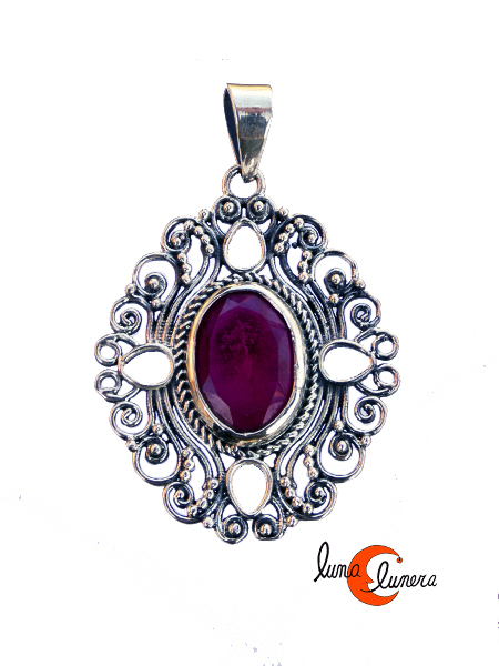 Colgante de plata y piedra. Colgante estilo antiguo con rubí facetado.
