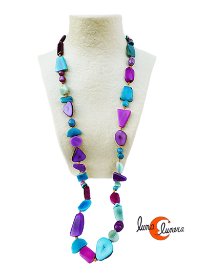 Collar hecho con semillas de tagua. Está hecho con piezas de semilla hiladas con cordel, es de una sola pieza sin cierre, bastante largo, lo que permite ponerlo tanto de una como de dos vueltas convirtiéndose en una preciosa gargantilla. Es muy ligero, vistoso, original y muy alegre. Bisuteria orgánica donde las semillas mantienen siempre el color y el brillo.