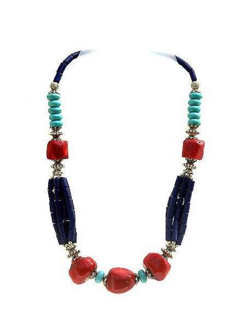 Collares India. Gargantilla de piedra y alpaca, imitación turquesas, lapiz lázuli y coral.