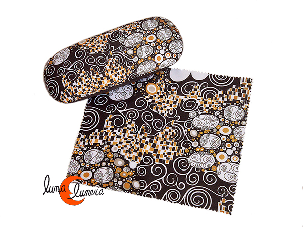 Colección Pintores. Funda para gafas rígida, con pañito limpiagafas a juego. Klimt negro.