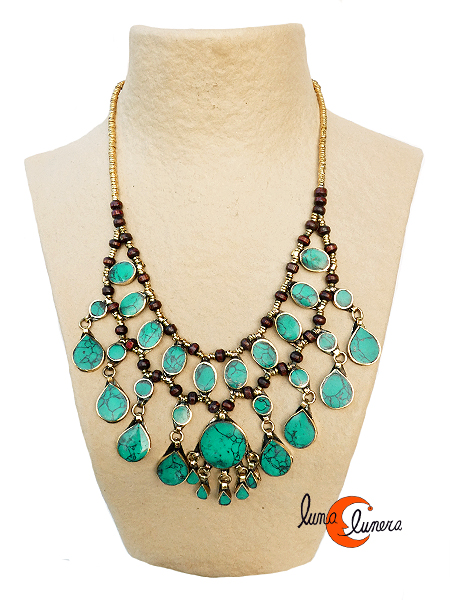 Collares India. Gargantilla estilo antiguo de alpaca y bronce con piedras verdes.