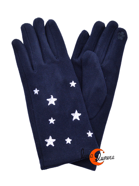 Guantes de tela color liso con estrellas bordadas blancas, color azul marino.