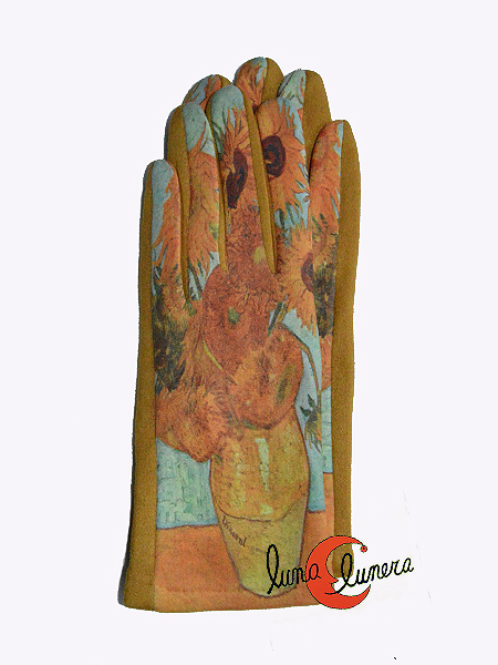 Guantes con imágenes de cuadros famosos, Girasoles de Van Gogh, guantes amarillos.