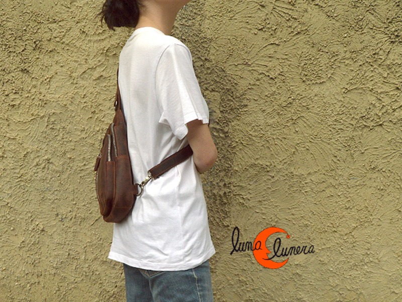 Espectacular mochila de bandolera de un asa o también llamadas mochilas de pecho de cuero de la casa Morgado, hecha en piel rústica, sin brillo, de excelente calidad. Tiene dos bolsillos exteriores por delante con cremallera. El compartimento principal, también con cremallera, tiene un pequeño bolsillo interior. Forrada con tela. Por detrás tiene un cuarto bolsillo antirrobo. Asa extensible de piel sobre tela cuya extensión máxima es de 1,35 cm. Se engancha en el extremo posterior con un mosquetón, lo que da la posibilidad de engancharla tanto a la derecha como a la izquierda.