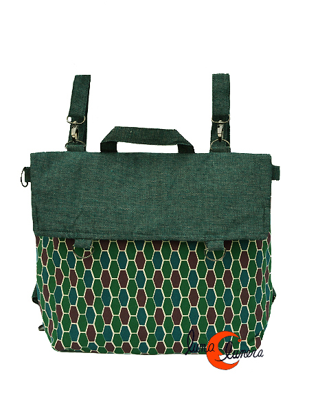 Mochilas de loneta Mugling. Mochila grande convertible en mochila más pequeña o bolso bandolera, según cómo se enganchen los tirantes. En su versión más grande en muy amplia, cabe un portatil, ropa, meriendas, zapatillas de deporte, etc. Por el frente tiene la cremallera principal y un bolsillo grande también con cremallera. por detrás tiene dos bolsillos antirrobo. Asas regulables. Forrada por dentro y con un bolsillo interior también con cremallera. Muy práctica, muy original.