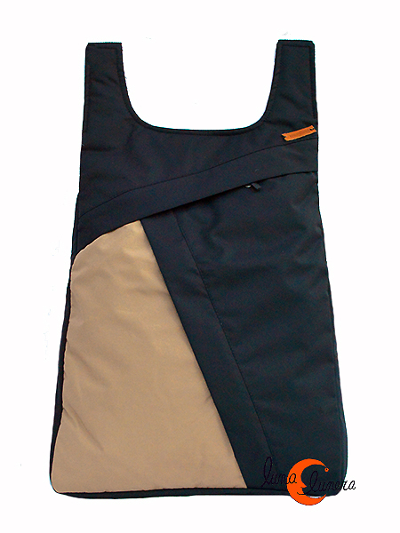 Mochilas de tela Mugling. Mochila unisex de tela impermeable muy ligera. Tiene dos bolsillos por el frente, uno grande en la cremallera de arriba y otro, también gande, en la cremallera diagonal. La apertura principal de la mochila, con cremallera antirrobo recta, es por detrás (pegada a la espalda) para mayor seguridad y tiene, además, otro bolsillo pequeño, también con cremallera más abajo, también por la espalda. Asas regulables y forrada por dentro. Es súper cómoda, bonita, original y muy, muy liviana.