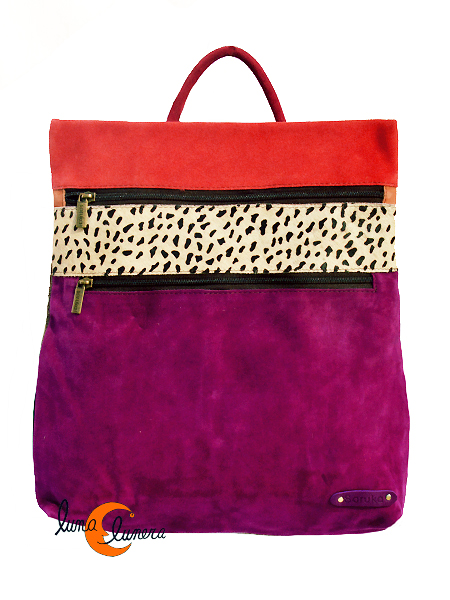Mohila de ante cuadrada de tamaño mediano de la casa catalana Soruka, fabricada en India con pieles recicladas. Producto de artesanía hecho con buenos acabados y buenos materiales, garantía de calidad. Cierra con cremallera superior. Por delante tiene dos cremalleras, la de abajo es un bolsillo grande y la de arroiba corresponde a la cremallera principal de la mochila. Por detrás tiene otro bolsillo antirrobo también con cremallera. Es una mochila muy original, moderna y muy bonita, de tamaño medio pero con bastante capacidad. Es de piel de ante.