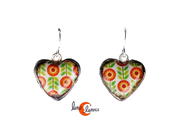 Mondo Manzana, bisutería con magaya de sidra. Pendientes pequeños corazón, Hojitas y flores.