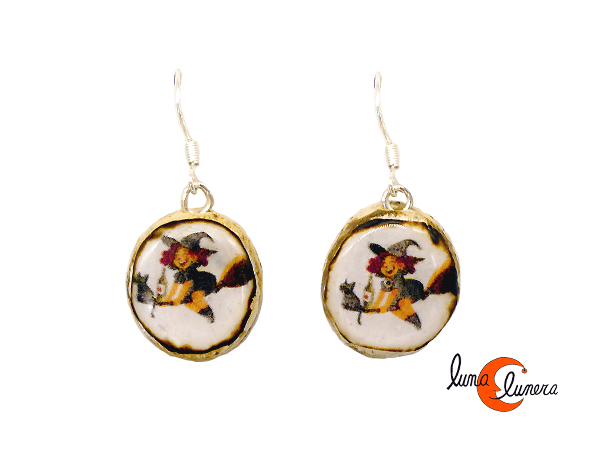 Mondo Manzana, bisutería con magaya de sidra. Pendientes pequeños círculos, bruja.