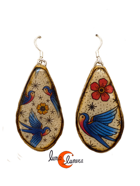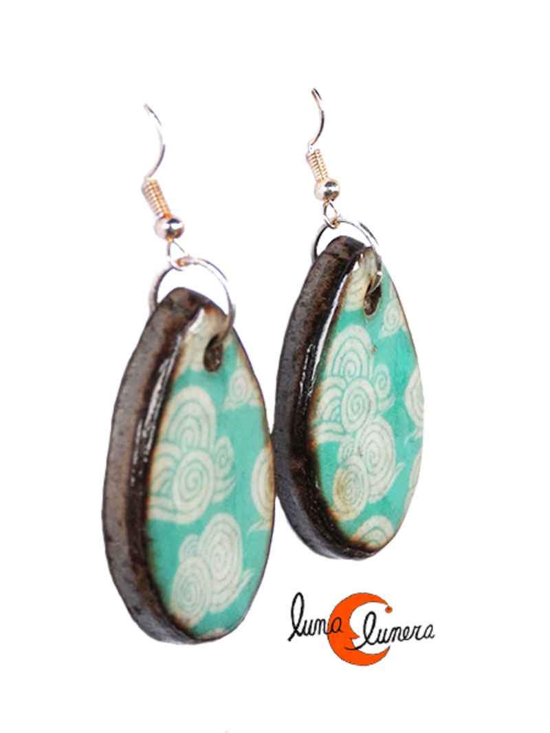 Mondo Manzana, bisutería con magaya de sidra. Pendientes medianos gota larga, golondrinas.