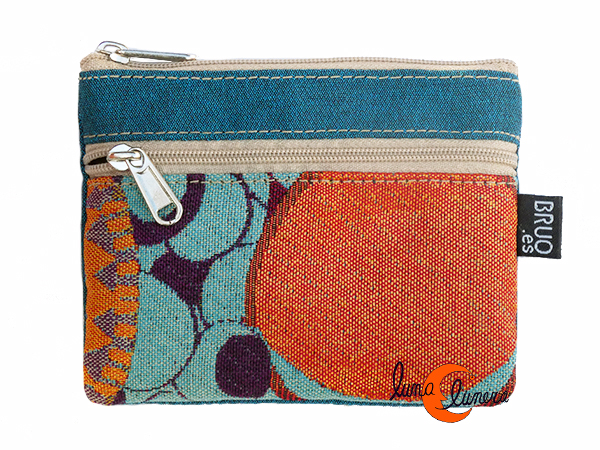 Monederos de tela Bruo. Monedero grande de dos cremalleras. Azul con círculo.