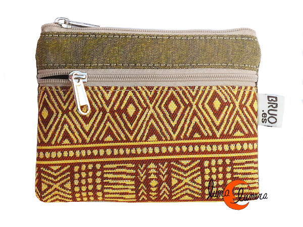 Monederos de tela Bruo. Monedero grande de dos cremalleras. Dibujos amarillo.