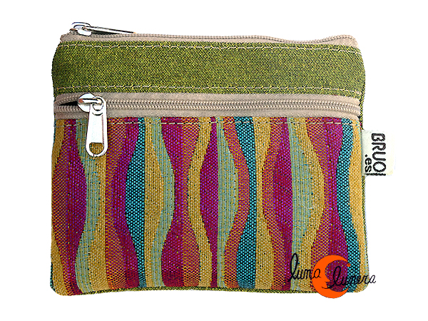 Monederos de tela Bruo. Monedero grande de dos cremalleras. Rayas verde.