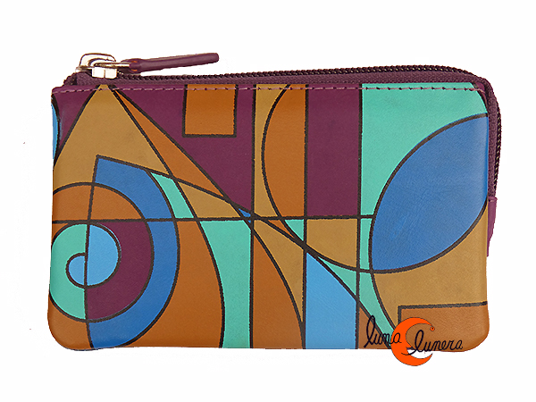 Monedero 25 de piel grande Belmonte. Geométrico morado.