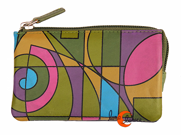 Monedero 25 de piel grande Belmonte. Geométrico verde.