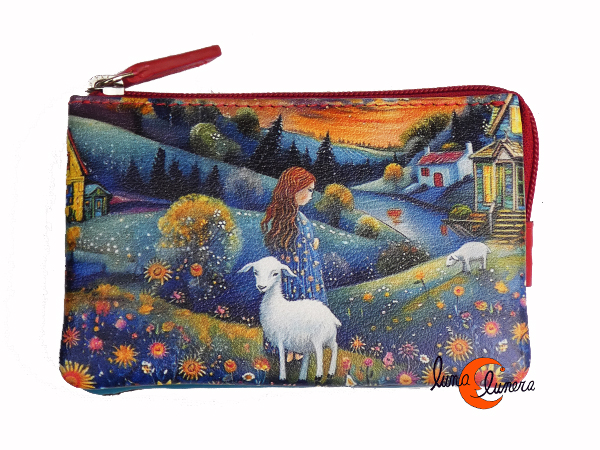 Monedero 21 de piel de colores Belmonte. Niña con sus ovejas.