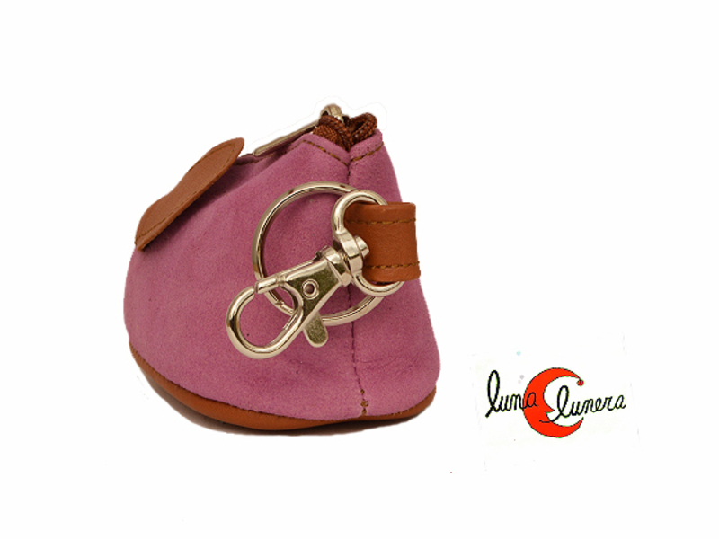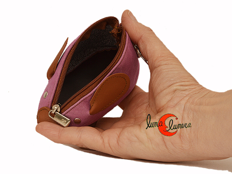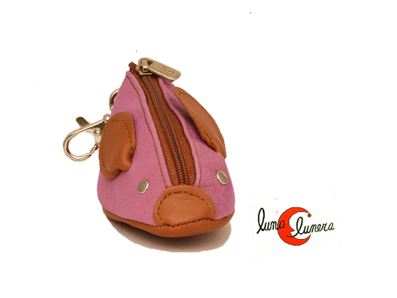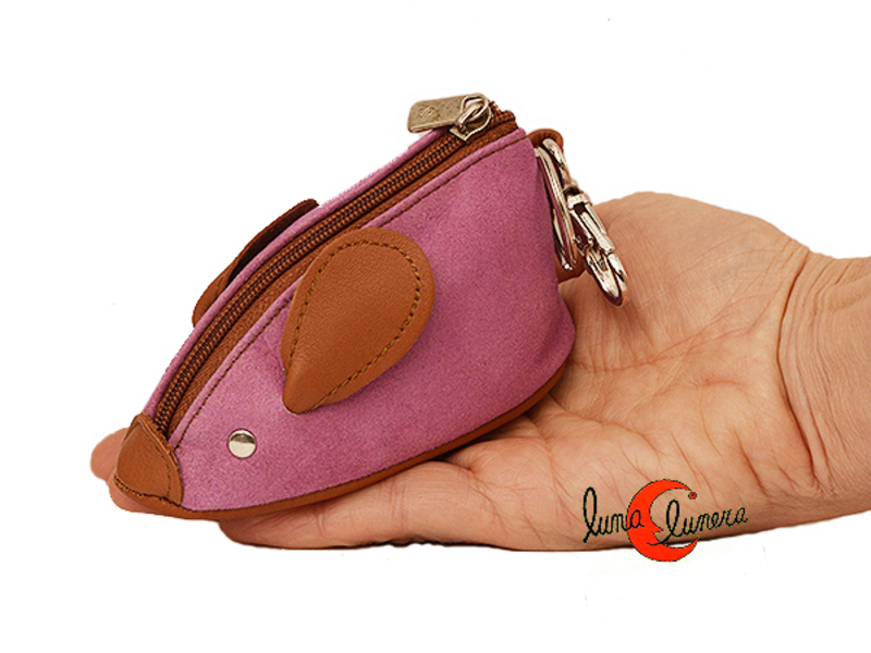 Monedero llavero de piel Morgado con forma de ratón con cremallera. Lila.