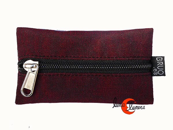 Chineras, monederos de tela Bruo. Monedero y llavero con una cremallera. Granate.