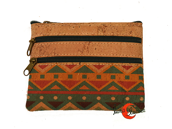 Monederos con criterios veganos hechos de corcho y tela. Tienen dos bolsillos por fuera por la parte delantera cada uno con una cremallera, uno grande yotro más pequeño. Forrado con tela por el interior. Tiene un tamaño perfecto para llevar lo imprescindible: DNI, alguna tarjeta y dinero suelto. Son muy livianos,pácticos, bonitos y de calidad.