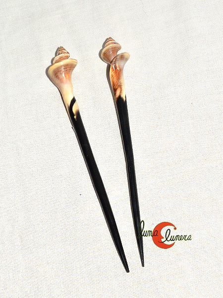 Palos para el pelo con espirales de caracolas.