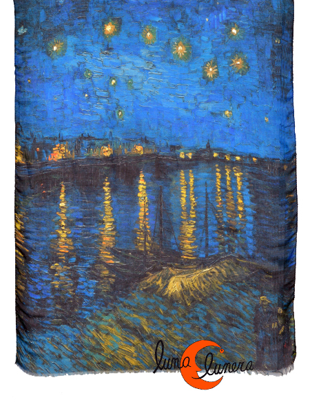 Pañuelo con forma de fular de tela muy suave, Noche estrellada sobre el Ródano de Van Gogh.