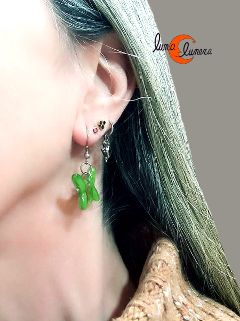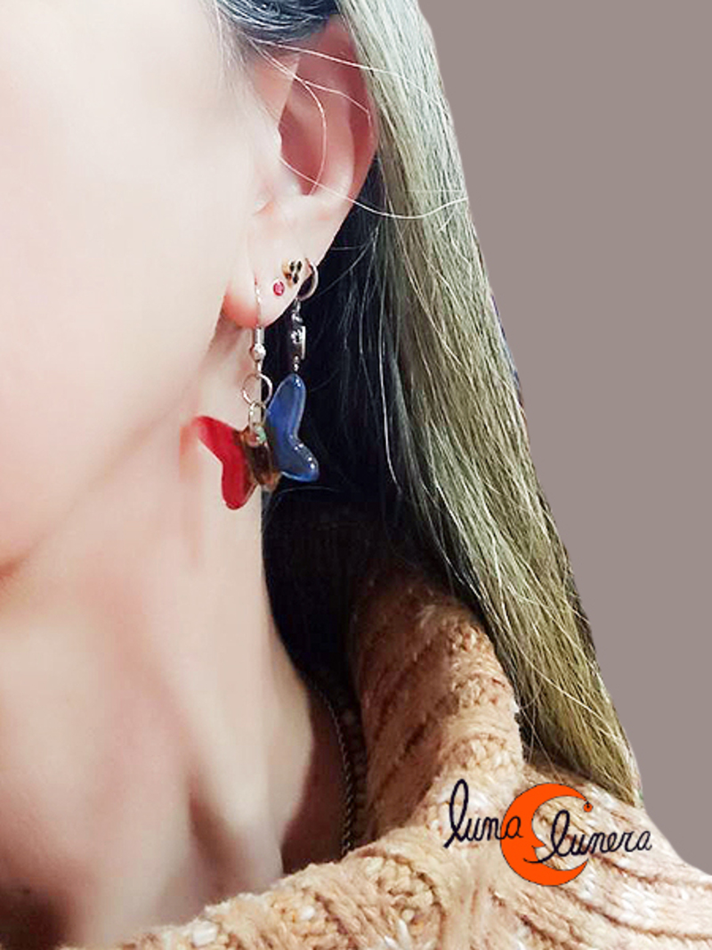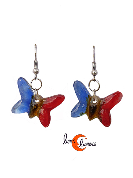 Pendientes de cristal fundido. Originales pendientes de artesanía con forma de mariposa.
