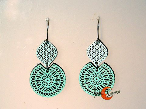 Silvereira, pendiente de madera calada, mediano de dos piezas, color verde agua.