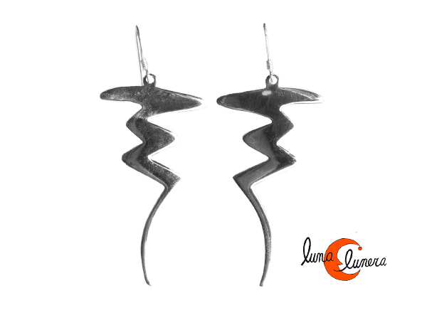 Pendiente de plata lisa con forma de rayo eléctrico de tamaño grande: 5 por 2,5 cm. (sin el gancho) No pesa, es muy liviano.