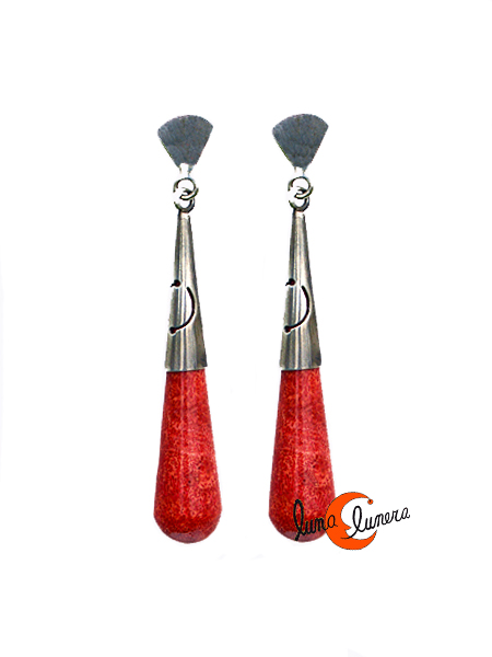 Pendientes de plata y coral rojo. Pendientes tipo gota con cierre de tuerca y chapa.