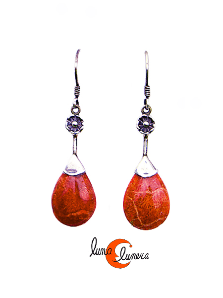 Pendientes de coral rojo con forma de gota, flor y gancho abierto.