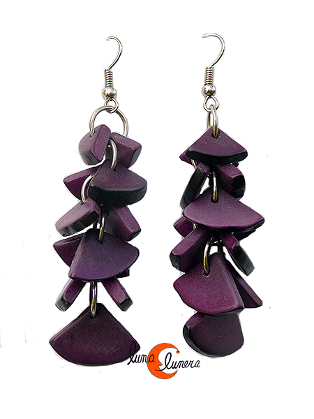 Pendiente hecho con semillas de tagua. Son pendientes artesanales, muy vistosos, originales y divertidos, las semillas mantienen siempre el color y el brillo. No pesan, son muy livianos.