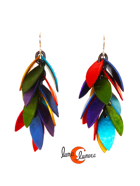 Oana Millet, joyas de aluminio. Pendiente mediano multicolor, hojas.
